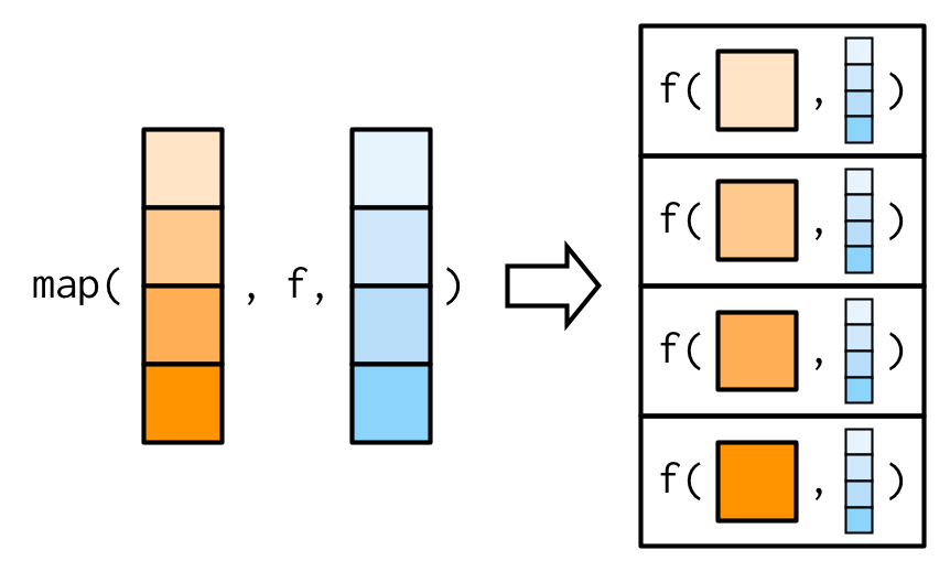 Hence, purrr developers offer a nice compact cheatsheet with visualizations at https://github.com/rstudio/cheatsheets/blob/main/purrr.pdf.