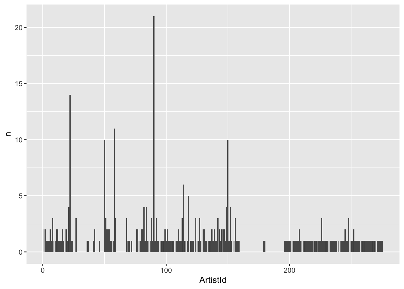 Ok let’s try some of the functions out. First, let’s count how many albums each artist has made.