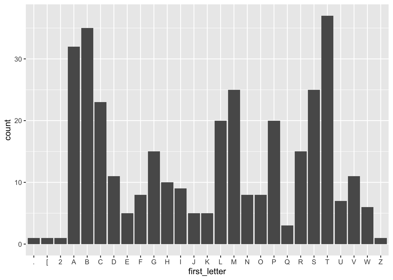 mutate(first_letter = str_sub(Title, end = 1)) %>%